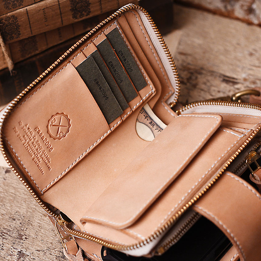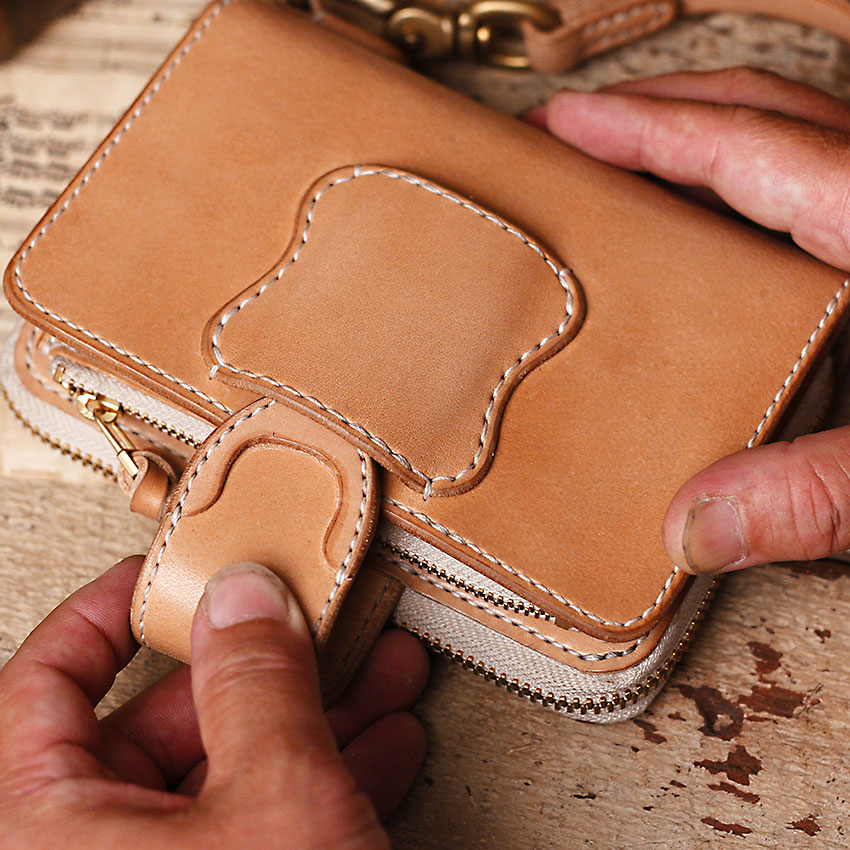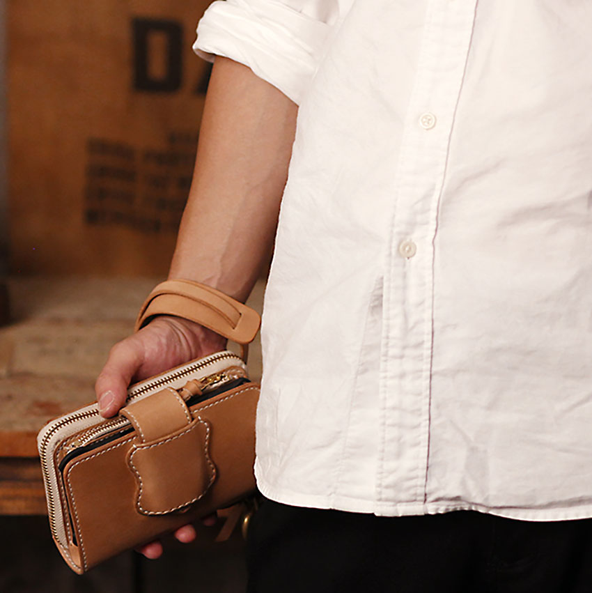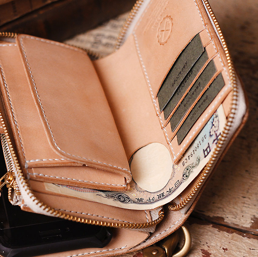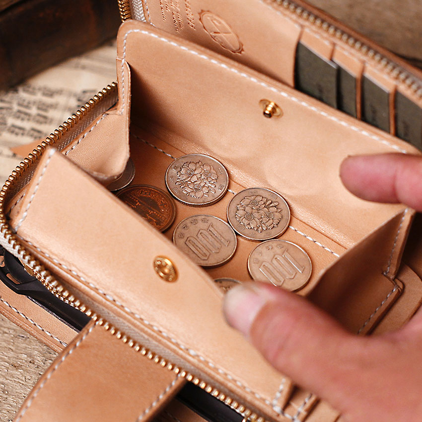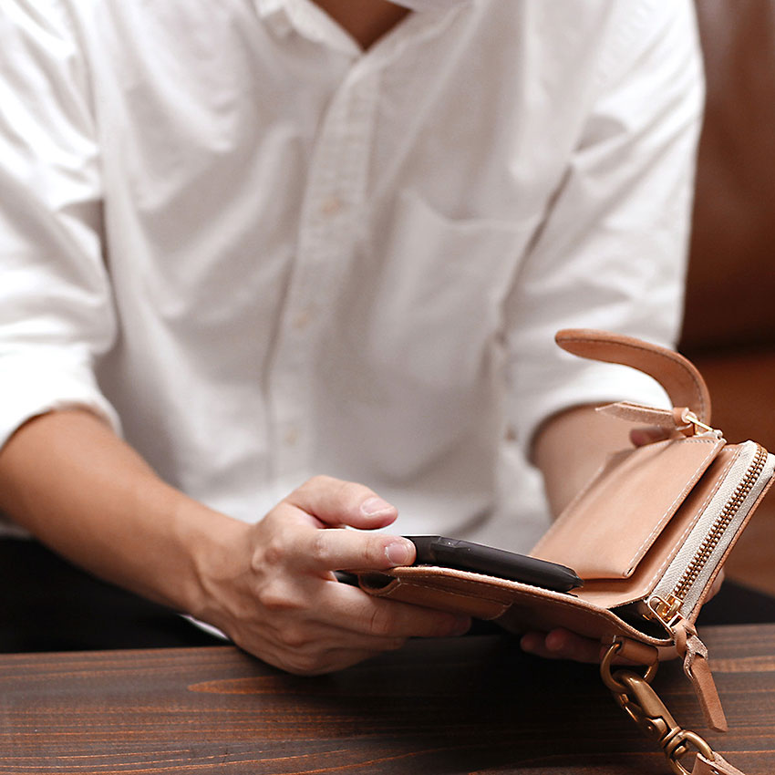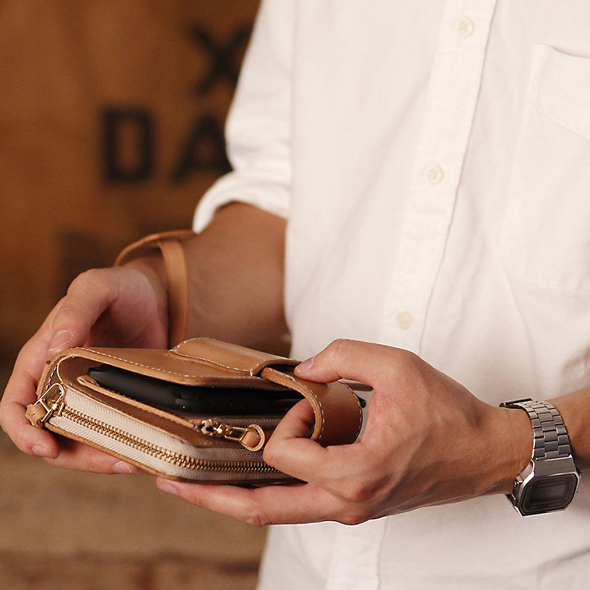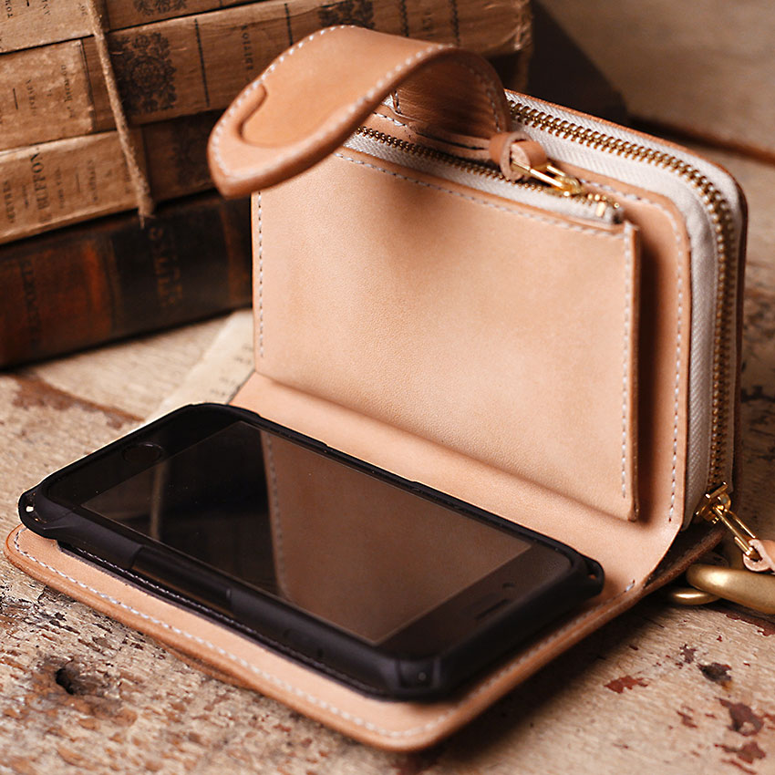 ガイア2096的、財布一体型スマホケースを栃木レザーの極上ヌメ革で制作