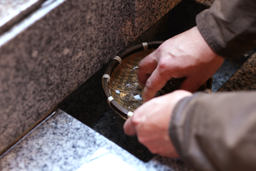 小網神社、銭洗いの井で洗い清めた五円玉