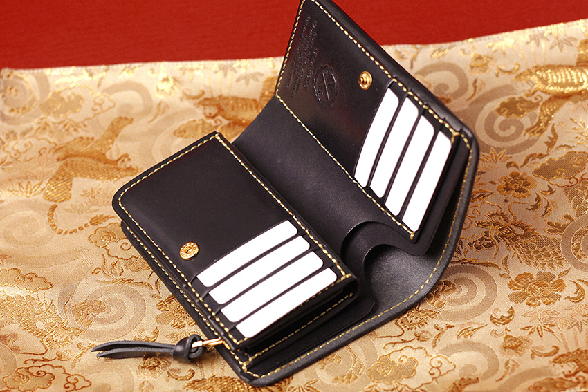 2025.12.21、最強開運日に使い初め。開運財布~金糸手縫い仕立てヌメ革財布ブラック