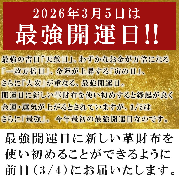 【 開運 財布 縁起 革財布 3/5 最強開運日 天赦日 一粒万倍日 寅の日 大安 最強 金 運 財布 ショートウォレット 二つ折り財布 馬革 財布】