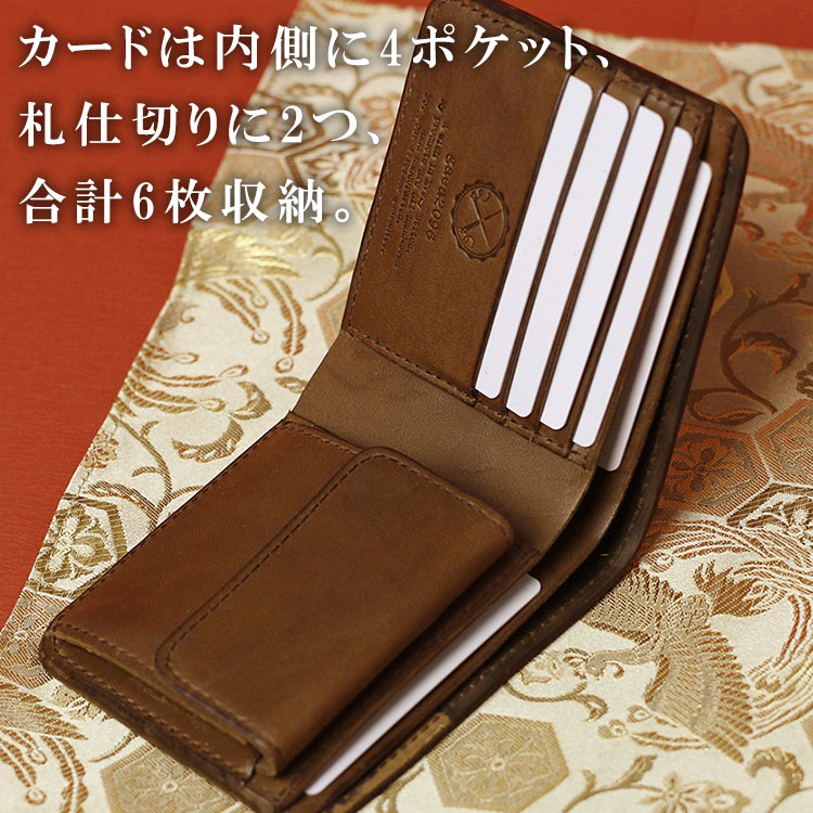 カードは内側に4ポケット、札仕切りに2つ、合計6枚収納。